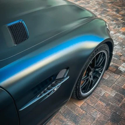 Спорткар має такі елементи, як активне рульове керування задніми колесами, дев’ятиступенева система контролю тяги та регульована підвіска. AMG GT R також демонструє характерний дизайн із решіткою радіатора Panamericana та пофарбований в матовий чорний колір.