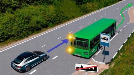 Автобус готується рушати з місця зупинки, тоді як легковий автомобіль рухається по смузі, на яку автобус планує з'їхати. Чи має водій легковика пригальмувати перед автобусом? Ситуацію пояснюють на каналі "Керманич".
