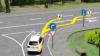 Отже, правильно буде обрати траєкторію, яка веде більш близько до правого краю дороги, навіть якщо вона призначена для громадського транспорту. Це дозволить водієві безпечно здійснити поворот праворуч, дотримуючись правил дорожнього руху.