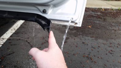 Для перевірки використовуйте балонний ключ. Натисніть на зливний отвір — якщо там є вода, вона повинна вилитися під машину. Це допоможе запобігти накопиченню води в багажнику.