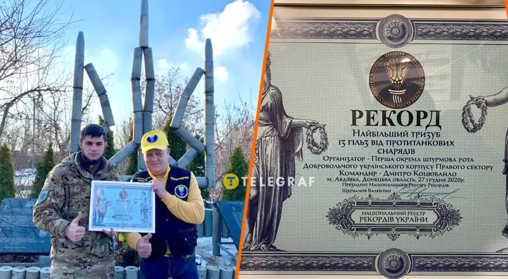 Ім'я Дмитра Коцюбайла навіки вписане не тільки в історію України, а й до Національного реєстру рекордів. Бійці його роти власноруч виготовили малий герб України зі 122 гільз. Цей металевий тризуб потрапив до реєстру рекордів як найбільший тризуб, зроблений із гільз протитанкових снарядів. Меморіал присвятили загиблим добровольцям.