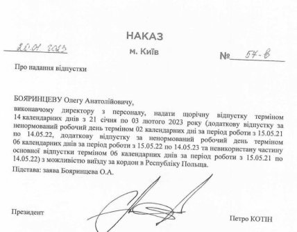 Після того, як Бояринцев виїхав з України, перебуваючі у відпусці, він подав заяву на звільнення. "Енергоатом" звільнив його 15 лютого.", — уточнює Ярослав Железняк.
