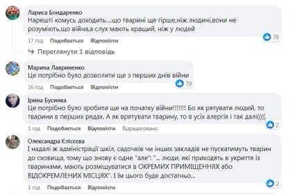 Питання про перебування в укритті із домашніми тваринами гостро втало після того, як 14 грудня 2023 року в Києві під час тривоги двох дітей не впустили до бомбосховища. Брат і сестра 11-річна Олександра та 12-річний Богдан Овчинникови прийшли в укриття з маленьким песиком породи мальтипу. Це не сподобалося охоронцю школи. Діти пішли в інше укриття, але в цей час над головою пролунав вибух.