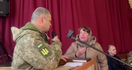 На ньому можна побачити, як одна з місцевих мешканок у розмові з представником ТЦК звинуватила військкоматників у тому, що ті нібито "прикриваються простим народом". Її підтримали решта громадян.