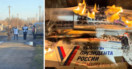 Окупаційна влада тисне на місцевих мешканців. При чому на окупованих територіях цей процес почали раніше та розтягнули на три тижні (з 25 лютого), росіяни не гребують ходити по будинках з урнами в супроводі озброєних військових, пояснює "Опора". Це називається "виїзними комісіями", і, коли до тебе додому приходять озброєні люди, то відмовитися складніше. Однак ми всі пам’ятаємо, що можна зробити, як цей чоловік у Херсоні: