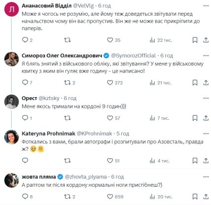 "Проходжу кордон. Даю паспорт та військовий квиток, де зазначено, що "знятий з військового обліку". Пан прикордонник: а є медичні документи? Я: показую на нижні кінцівки. Прикордонник: не ну я бачу, але все одно", — пише Олег Симороз.