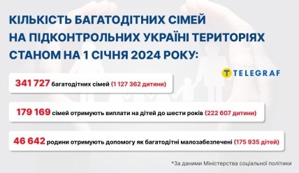 Крім того, під час повномасштабної війни представництво Дитячого фонду ООН в Україні (ЮНІСЕФ) запровадило програму тимчасової підтримки на всій території України без прив’язки до статусу переселенця (ВПО) для багатодітних родин, які: