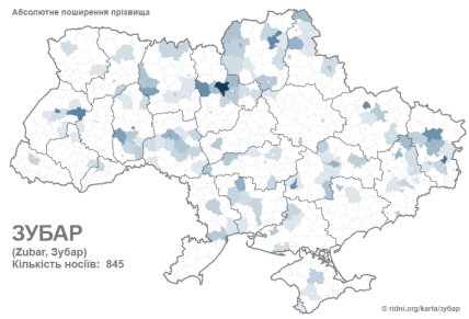 Людину, що виривала зуби, на селі могли прозвати Зубар. Згідно з даними порталу "Рідні" нині в Україні 845 носіїв цього прізвища. А також по кілька сотень похідних від нього: Зубарев, Зубарева чи Зубаренко.