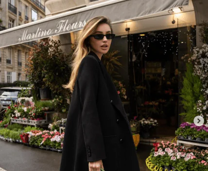 На кадрах, опублікованих у Instagram, блогер показала прогулянку у столиці Франції. Одягнені на дівчині чорні класичні штани, біла футболка та пальто.