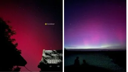 Дивовижні фото публікують у мережі. Північне сяйво хоч і рідкісне для України явище, але з початку травня відбувається вже вдруге — його помітили 2 травня, а до цього восени 2023 року.
