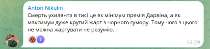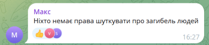 Іншим користувачам соцмереж цей жарт теж не сподобався. Більшість погодились, що не варто сміятись над гибеллю людей. Ось що писали користувачі: