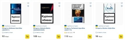 Одна з найвідоміших у світі марок цигарок Marlboro в українських супермаркетах коштує 105 гривень. Бюджетні сигарети, зокрема Strong або Monte Carlo, можна придбати дешевше 90 гривень.