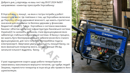— Звісно ж, ми розуміємо, що шум генераторів біля магазинів, кафе, аптек, банків загалом заважає людям, — визнають в Укргазбанку. — Однак потрібно усвідомлювати, що "шум" генераторів — це робочі місця, бізнес, що функціонує, а отже сплачує податки та підтримує економіку країни.