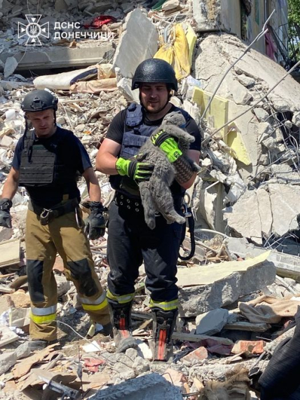 У Мирнограді на Донеччині рятувальники з-під завалів дістали котика кота. Своїм нявканням домашній улюбленець врятував господиню від російської атаки, адже "покликав" її до кімнати, яка вціліла після влучення ворожої бомби.