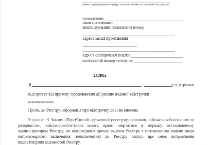 Відстрочку дали, але у реєстр не внесли: як це виправити без черг у ТЦК (зразок заяви)