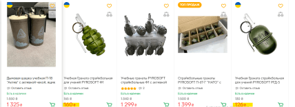 Набір із 6 і більше гранат обійдеться покупцям у 900-1500 гривень залежно від їх кількості, модифікації та постачальника.