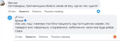 На деякі скарги в компанії відповіли та заявили, що над усуненням несправностей вже працюють фахівці.