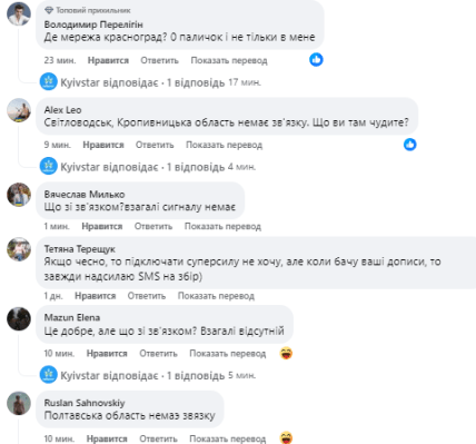 Кореспонденти "Телеграфа" також повідомляють, що зв’язку немає у Києві, Запоріжжі, Полтавській, Харківській області та інших. При цьому, наприклад, у Львові у зв’язку немає жодних проблем.