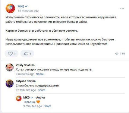 ПАТ "Московський кредитний банк" — універсальний комерційний банк, який надає повний спектр банківських послуг. Він входить до числа системно значущих кредитних організацій РФ. МКБ обслуговує як приватних клієнтів, так і корпоративний сектор.