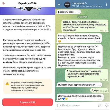 Усі гроші, які надійдуть на старі картки Mastercard, автоматично перейдуть на нові картки Visa. Клієнтам не треба хвилюватися про втрату коштів.