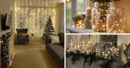 Різдвяні світильники на батарейках з вбудованими світлодіодними лампочками ідеально підійдуть для того, щоб повісити їх на вікно. Мають вбудовані таймери, які можуть вмикати освітлення щодня в один і той же час і підтримувати його протягом 6 годин.