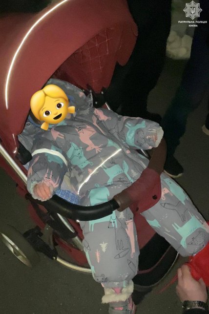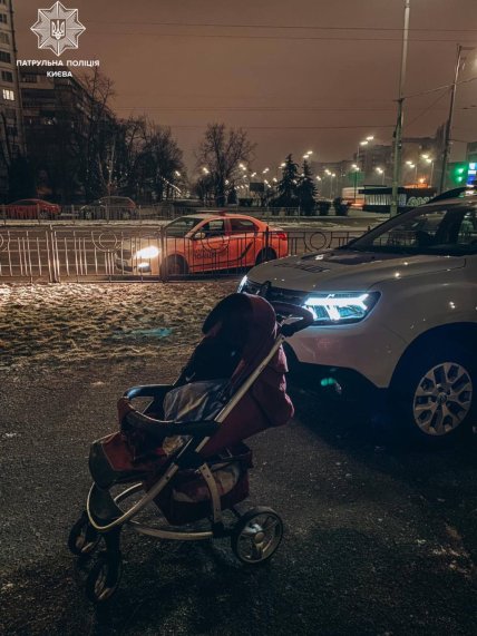 Вночі у понеділок, 13 січня, патрульні поліцейські натрапили на візочок з дитиною просто посеред тротуару.