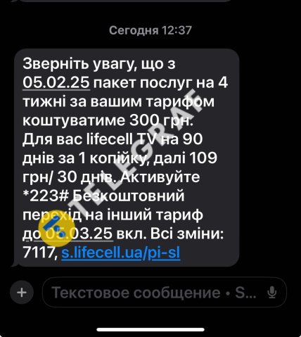 Мобільний операторів "Lifecell" розіслав своїм клієнтам повідомлення про те, що в тарифній політиці компанії відбуватимуться значні зміни. Протягом лютого-березня 2025 року компанія скорочує кількість тарифів і підвищує їхню вартість.
