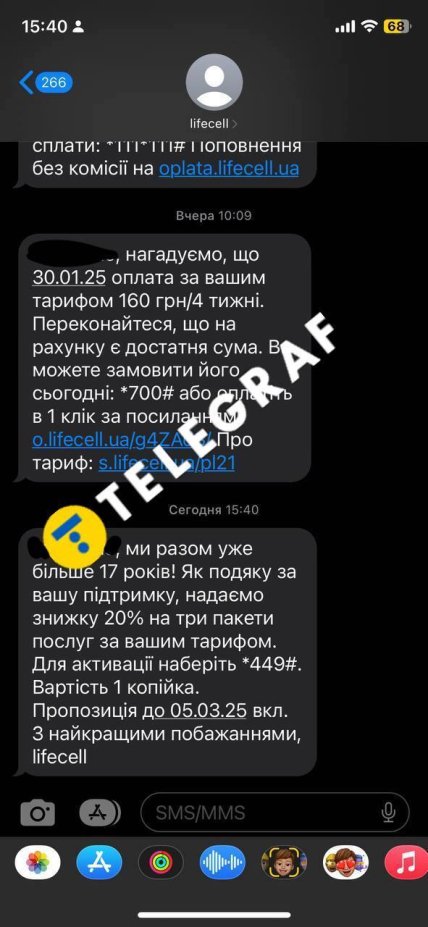 Однак ці зміни торкнулися не всіх, оскільки клієнтам, які вже тривалий час є шанувальниками "Lifecell", компанія передбачила великі знижки. Про це "Телеграфу" стало відомо з нещодавньої SMS-розсилки.