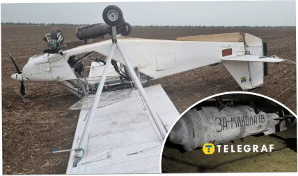 Зауважимо, що на фото збитий дрон з бомбою, яка не здетонувала. З його фюзеляжу важко зрозуміти точну модель БПЛА, проте видно, ще це одна з нових модифікацій, яка може нести потужний заряд на собі.