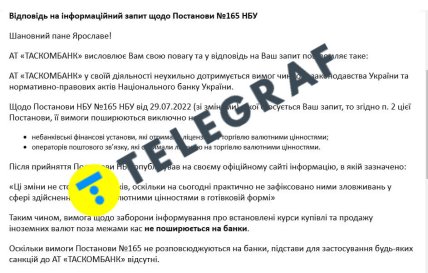 Про це свідчать відповіді від НБУ та "ТАСКОМБАНКУ".