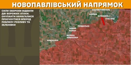 На Новопавлівському напрямку війська РФ намагаються штурмувати позиції ЗСУ в районі Константинополя, Зеленівки та Розливу. Проте українські військовослужбовці успішно відбивають атаки та завдають по колонам ворога прицільних ударів.
