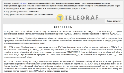 У грудні 2024 року він отримав офіційне попередження з вимогою з’явитися до територіального центру комплектування (ТЦК), проте проігнорував його без поважних причин.
