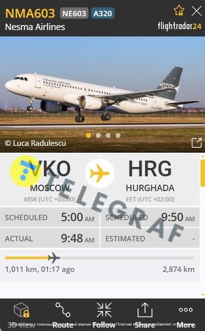 За даними мапи польоту, зранку борт Airbus A320-214 нібито залетів на територію західних областей. Він пролетів майже над Львовом. Літак рейсу NE603/NMA603 о 9:48 вилетів з Москви та о 13:46 приземлився у єгипетському місті Хургада.