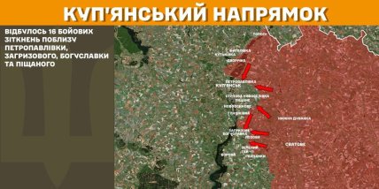 На Куп'янському напрямку відбулося 16 бойових зіткнень поблизу Петропавлівки, Загризового, Богуславки та Піщаного.