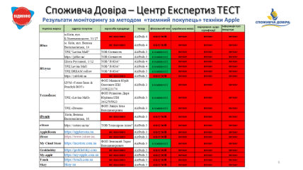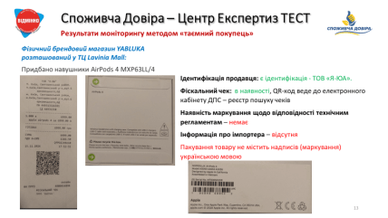 Та при цьому "Yabluka", здається, не дуже вже вірні бренду, адже також не нехтують продажем "сірої" техніки. Під час грудневого споживчого моніторингу "таємні покупці" придбали в мережі товари, на пакуванні якого була відсутня інформація про імпортера, маркування щодо відповідності технічним регламентам, крім того маркування українською мовою такою не було. В деяких чеках не був ідентифікований продавець, а в деяких фігурувало ТОВ "Я-ЮА", власником якої є Юлія Пісна, та ФОП Артем Гнатенко. Тож, як бачимо, й в цій мережі йшли на порушення закону заради заробітку.