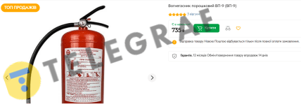 Порошковий вогнегасник ВП-9 (ВП-9) з манометром призначений для ліквідації невеликих ділянок пожеж. Є оптимальним рішенням, що дозволяє контролювати вогнище загоряння до приїзду пожежної команди. Вага спорядженого вогнегасника – 13 кг, речовини, що гасить — 9 кг. Максимальна площа гасіння – до 45 м. кв. Ціна — 735 гривень.