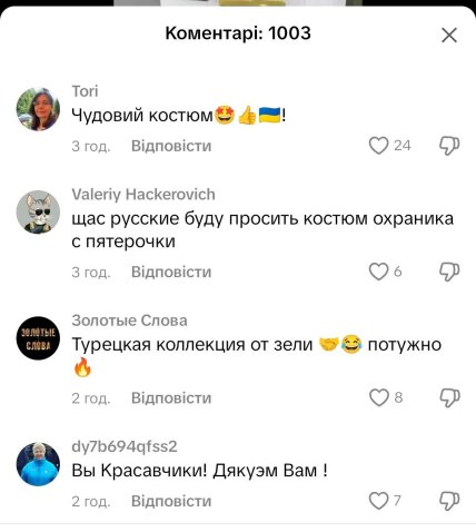 Так, у Тік-Ток опублікували відео, де чоловік в одному магазинів показує три костюми, які схожі на стиль Зеленського. Автор відео позує у вбранні зеленого кольору, ймовірніше наближеному до стилю мілітарі.