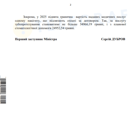 Також у 2025 році Кабмін підвищив вартість наданих медичних послуг одному пацієнту (гроші держави, які може витратити людина на своє лікування в стоматології за цією програмою). Зубопротезування коштує максимум 34966,19 гривні, планова стоматологічна допомога — максимум 24 952,54 гривні. До цього розцінки становили 14 984 грн та 24 952 грн відповідно.