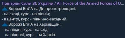 За даними Повітряних сил ЗСУ, дрони зафіксовані як у східній, так і центральній частині області, зокрема з курсом на північ і північний захід.