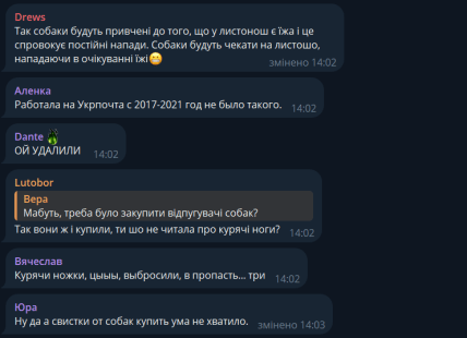 Інші коментатори поділилися своїм досвідом роботи в "Укрпошті". Одна з українок написала, що за час роботи в компанії, ніяких курячих ніжок не бачила.