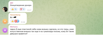Користувачі в мережі бурхливо відреагували не стільки на відео блогерки, скільки на її зовнішність. "Міс ДНР" має великі накачані губи, більші за стандартні, розкосі очі, що ймовірніше вказує на підтяжку, та неприродно гості риси обличчя. До того ж блогерка полюбляє підкреслювати свою зовнішність яскравим макіяжем з червоною помадою та стрілками. Багато людей в коментарях не стримували емоції.