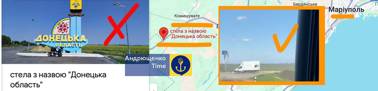 Російські окупаційні сили зняли в’їзну стелу з написом "Донецька область" на трасі М14, що проходить між захопленими Маріуполем та Бердянськом. Ця стела розташовувалась на адміністративній межі між Донецькою та Запорізькою областями та слугувала символом приналежності території до України.