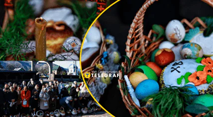 Ці кошики зазвичай вибудовують у ряд, а потім священник здійснює свій ритуал — окроплює їх святою водою.