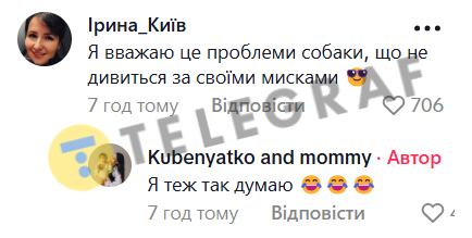 Не обійшлося й без приколів на адресу самого пса. "Це проблеми собаки, що не дивиться за своїми мисками", — іронічно написала користувачка.
