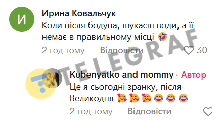 "Коли після бодуна шукаєш воду, а її немає в "правильному" місці", — посміялася українка. Інша жінка також пожартувала, мовляв "ти не ти, коли сушить".