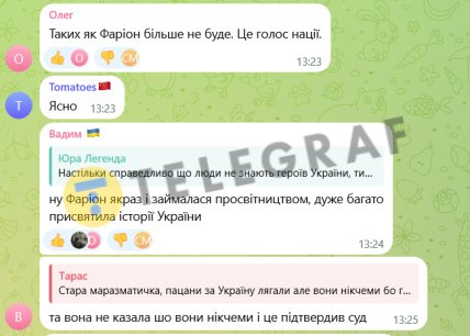 Реакції не забарилися: коментарі почали стрімко ширитися мережею, розділивши користувачів на 2 табори. Одні — висловлюють повагу, вважаючи внесок Фаріон у справу України значущим, інші — обурюються, зазначивши, що її постать недоречна серед полеглих героїв.