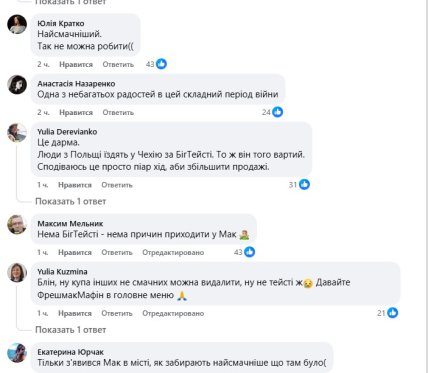 На сторінці самого закладу у Фейсбук люди почали коментувати новину. Їм прикро, що страви більше не буде.