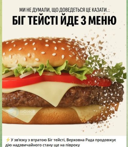 Користувачі мережі зробили жарт про Верховну Раду з картинкою Біг Тейсті. Люди жартують, що у зв'язку з цим депутати "продовжать дію надзвичайного стану".