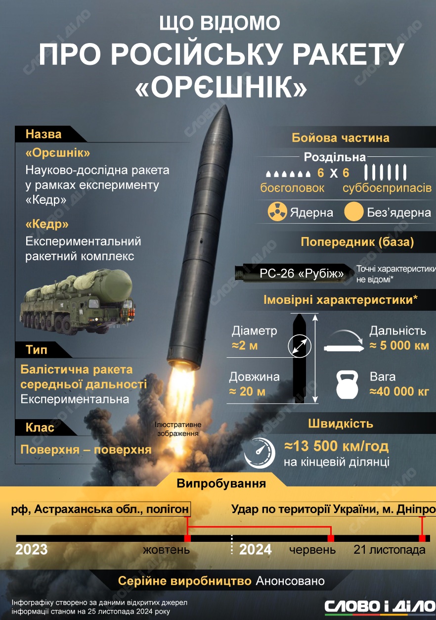 Нагадаємо, раніше ми писали про те, за скільки хвилин російська ракета "Орєшнік" може долетіти до столиць Європи (інфографіка).