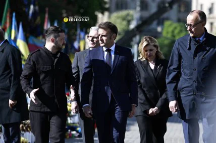 Еммануель Макрон разом з іншими лідерами Європи — Кіром Стармером, Фрідріхом Мерцем та Дональдом Туском, прибув до Києва у суботу, 10 травня. Разом з главою України Володимиром Зеленським, президент Франції, прем'єри Великобританії та Польщі й канцлер Німеччини вшанували пам'ять українських героїв на Майдані Незалежності.